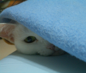 前天晚上她還跳上我爸媽的床,不過只睡了一晚就被趕出來了。看來可憐的饅頭只好繼續流浪啦。