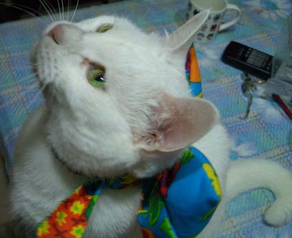 饅頭最新造型背面再度感謝蛋蛋幫饅頭製作的項圈呵呵呵超大蝴蝶結耶實在太可愛了鮮豔的色彩粉有夏天的氣息拍照時的漏網鏡頭看到了嗎居然拍到饅頭吐舌頭的樣子真可愛